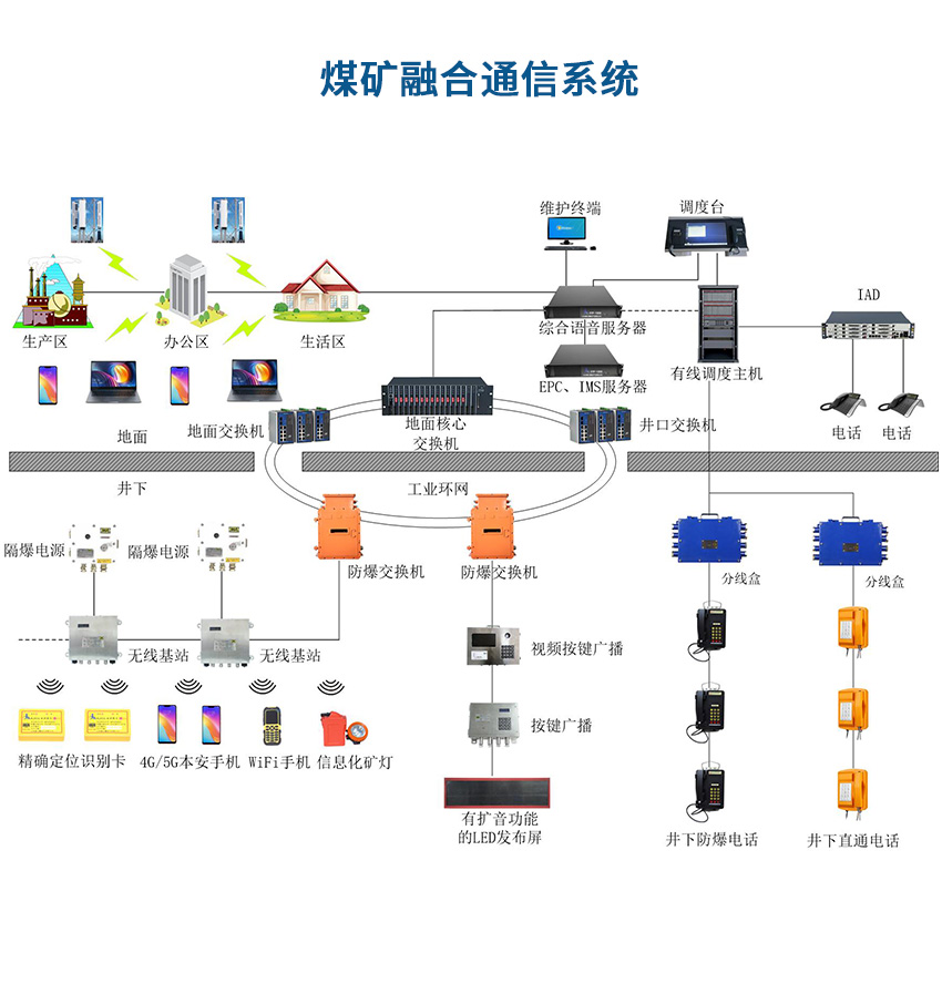 2.實現(xiàn)程控調(diào)度系統(tǒng)與地面電話、井下無線通信系統(tǒng)、井下擴播、人員定位系統(tǒng)、應急廣播通信系統(tǒng)、監(jiān)測監(jiān)控系統(tǒng)、視頻監(jiān)控系統(tǒng)等系統(tǒng)多網(wǎng)融合,