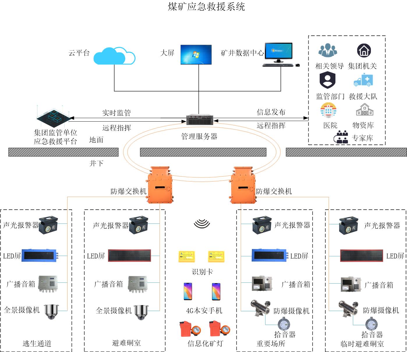 煤礦應(yīng)急救援管理系統(tǒng)哪個品牌好?煤礦應(yīng)急救援管理系統(tǒng)通過5G網(wǎng)絡(luò)信息傳輸入網(wǎng),煤礦井下眾多的設(shè)備如地面智能信息發(fā)布終端,井下應(yīng)急LED信息牌、井下應(yīng)急LED指示牌、井下應(yīng)急聲光報(bào)警器、井下應(yīng)急調(diào)度攝像頭等煤礦應(yīng)急救援管理系統(tǒng)設(shè)備通過5G網(wǎng)絡(luò)連接,實(shí)現(xiàn)了井下語音、視頻、數(shù)據(jù)一網(wǎng)承載,各種智能化操作系統(tǒng)信息的一網(wǎng)傳輸。井下的作業(yè)情況的數(shù)據(jù)信息可以實(shí)時傳回至地面總調(diào)度室,調(diào)度人員通過大屏幕便可以實(shí)時觀看深井下的采掘、運(yùn)輸、檢修等情況,通過系統(tǒng)的可視化救援流程,實(shí)時對救援過程進(jìn)行監(jiān)控管理、逃生救援引導(dǎo)、常規(guī)信息發(fā)布、安全警示教育、環(huán)境安全信息實(shí)時顯示、預(yù)警預(yù)報(bào)、調(diào)度廣播等作用,有效解決應(yīng)急救援井下信息“最后一公里”,提升煤礦應(yīng)急救援水平,提高應(yīng)急救援效率,促進(jìn)煤礦信息化和數(shù)字化礦山建設(shè)。